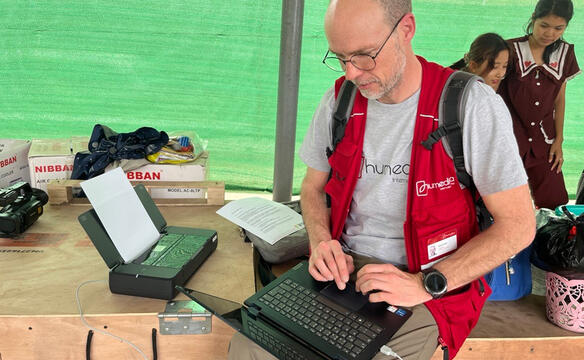 „Unser Einsatz in Myanmar war eine Herausforderung, weil wir nicht genau wussten, was uns erwartet“, erzählt Tobias Kann, der als Logistiker nach dem schweren Erdbeben Ende März vor Ort war: „Die Informationslage im Vorfeld war so unklar, dass wir zunächst ein Erkundungsteam geschickt haben, um die Lage vor Ort einzuschätzen.“ Ein zehnköpfiges Team mit Ärztinnen und Ärzten sowie Pflegekräften konnte kurze Zeit später nachreisen. Auf dem Hof eines vom Erdbeben betroffenen Krankenhauses bauten sie mithilfe der örtlichen Bevölkerung eine Ambulanz auf. Fast 1.000 Patientinnen und Patienten konnte das medizinische Team dort behandeln und deren hausärztliche Weiterbehandlung sicherstellen. Zusätzlich brachten sie medizinisches Material und Wasserfilter in die betroffene Region.