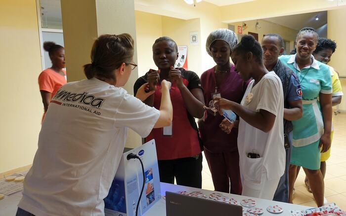 humedica fokussiert sich hier auf den medizinischen Bereich. Zu diesem Zwecke reisen medizinische Teams der Johannesbad Fachkliniken über das Jahr 2018 regelmäßig zu Trainingszwecken nach Port-au-Prince ins Krankenhaus der Hoffnung. Im Fokus stehen Schulungen und Train-the-Trainers-Workshops im Bereich Hygienemanagement.