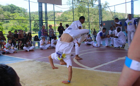 Die humedica-Kindertagesstätte in Campo de Coelho, nahe der Stadt Nova Friburgo, existiert seit mehr als 30 Jahren. Kinder wie Gabriel kommen hierher. Ohne diese Betreuung, hätten viele kein warmes, ausgewogenes Mittagessen. Außerdem bietet humedica in Brasilien Hausaufgabenbetreuung und Nachhilfeunterricht an, aber auch Aktivitäten, die den Kindern Spaß bereiten und ihre menschliche und soziale Entwicklung fördern. So wie Capoeira, was nicht nur Gabriel Spaß macht.