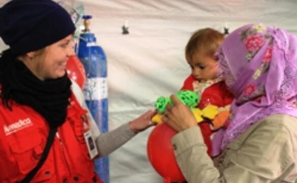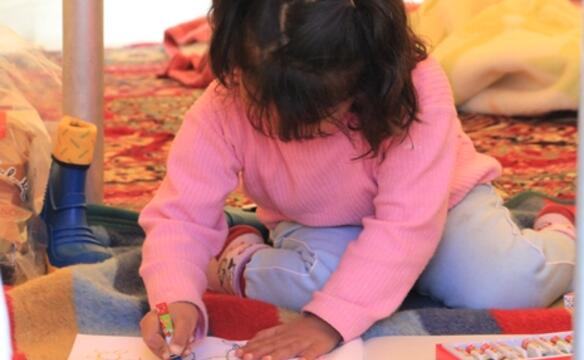Zu diesem Zweck überreichte humedica einem Team aus ehrenamtlich in Ercis tätigen Psychologen zunächst Zeichenblöcke und Wachsmalstifte. Am Rande der Zeltstadt wurden speziell für die Kinder abgeschirmte Bereiche eingerichtet, die ihnen in dieser Situation der Unsicherheit Schutz und Geborgenheit versprechen.