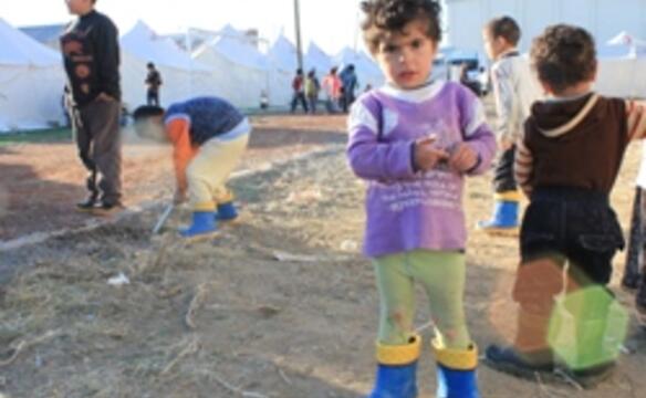 Ebenfalls für die Mädchen und Jungen der Zeltstadt verteilte humedica in Zusammenarbeit mit dem Türkischen Roten Halbmond Stiefel. Bereits 1.500 Paar in verschiedenen Größen und Farben erreichten die kleinen bedürftigen Empfänger. Verursachten vorher noch Schlappen oder Hausschuhe kalte Füße, haben die Kinder mit den Stiefeln nun Schutz vor Nässe und Kälte.