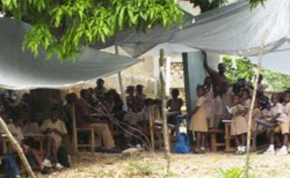 In provisorisch errichteten Klassenzimmern können die 750 Mädchen und Jungen seit einigen Monaten bereits auch wieder dem Unterricht folgen.