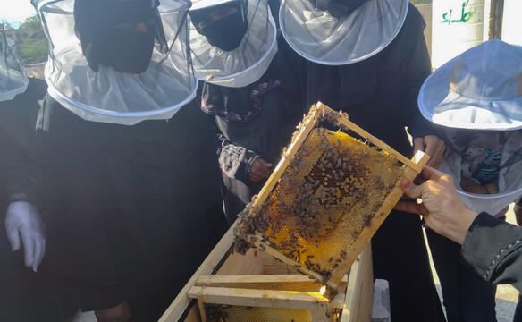 Maryam and the other women learn how to create better prospects for their families with beekeeping.