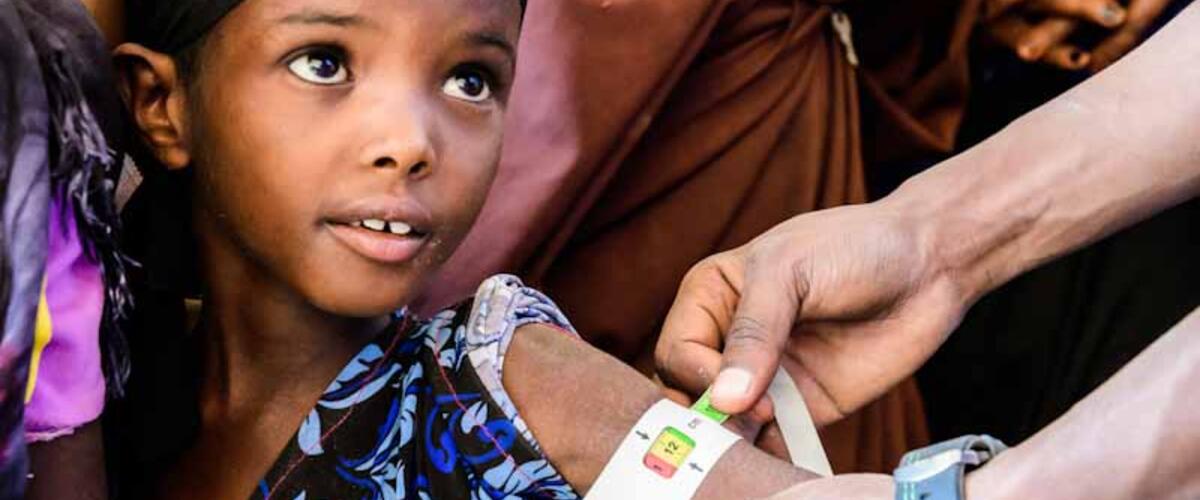 Ein Mädchen bekommt den Armumfang gemessen, um Unterernährung frühzeitig zu behandeln.