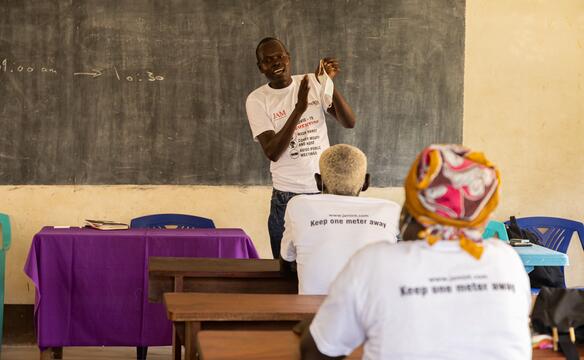 Eine weitere Gefährdung für die Menschen stellt die weltweite COVID-19-Pandemie dar. JAM sensibilisiert die Menschen in den Städten Jubo, Bor South, Twic und Aweil Centre deshalb für die notwendigen Hygieneregeln.