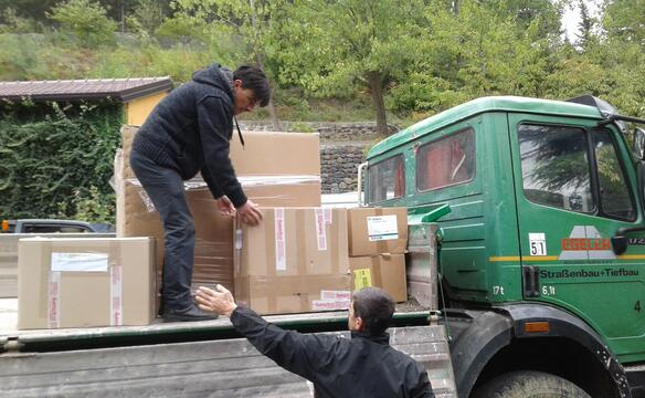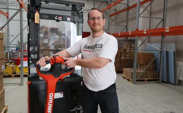 Mit GRUMA mehr bewegen— genau dies trifft auch auf unsere Logistiker zu. Denn unsere Jungs schuften schwer, um das humedica-Lager in Schuss zu halten und die benötigten Hilfsgüter für die einzelnen Projekte zu verwalten. Dieser Job ist nicht immer leicht und kann den Rücken belasten. Umso mehr freuen sich die Herren, dass sie tatkräftige Unterstützung durch einen Elektrohochhubwagen und eine Arbeitsbühne der Firma GRUMA erhalten haben. Mit dieser großzügigen Spende wurden alle humedica-Logistiker sehr glücklich gemacht.