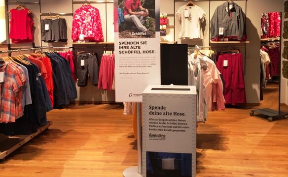 Gib Deine getragene Hose zurück und hilf damit Menschen in Not. So könnte man eine Aktion des Outdoorbekleidungsherstellers Schöffel mit kurzen Worten beschreiben. Das Unternehmen nimmt gebrauchte Hosen zurück, bereitet sie auf und gibt diese an humedica weiter. Sie kommen dann bedürftigen Menschen in Projekten rund um den Globus zugute. „Ich freue mich, dass wir mit unserer Kleidung einen Beitrag zur Arbeit von humedica leisten und damit nachhaltig handeln können“, so Peter Schöffel, der geschäftsführende Gesellschafter der Bekleidungsfirma. Boxen, in denen man seine getragenen Hosen abgeben kann, findet man fast überall, wo es Schöffel gibt.