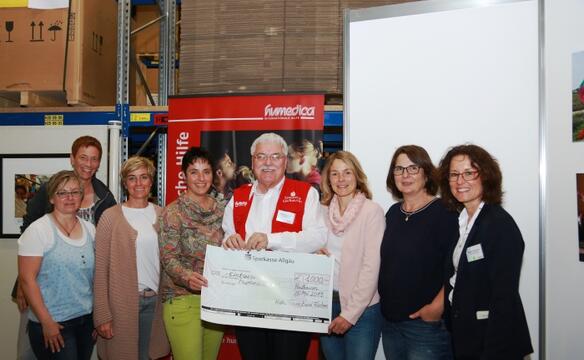 Auch der katholische Frauenbund Fischen brachte zum Geburtstag einen Scheck mit. Die Organisation unterstützt die Arbeit von humedica bereits seit vielen Jahren. Am Rande der Jubiläumsfeierlichkeiten überreichten sie einen Scheck über 1.000 Euro an Wolfgang Groß und seine Nachfolgerin Heinke Rauscher. Herzlichen Dank für diese wertvolle Unterstützung.