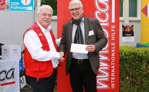 Statt Geschenken rief humedica-Geschäftsführer Wolfgang Groß zu Spenden für das Jubiläumsprojekt auf. Mit seinen Kinder- und Bildungsprojekten verschaffen wir Kindern und ihren Familien in Sri Lanka, Indien, Brasilien, Äthiopien und dem Kosovo bessere Chancen für die Zukunft. humedica betreibt dort Kindergärten, Schulen und Kindertagesstätten, greift aber auch den Eltern bei der Existenzgründung unter die Arme. Die Kreis- und Stadtsparkasse Kaufbeuren unterstützt unser Jubiläumsprojekt mit insgesamt 6.000 Euro. Vorstand Franz Endhardt übergab den Scheck am Rande der Jubiläumsfeierlichkeiten an Wolfgang Groß.