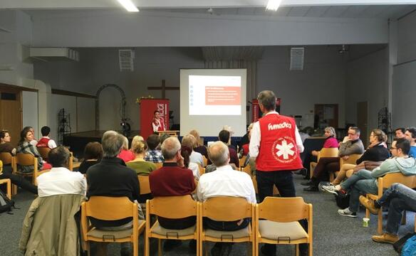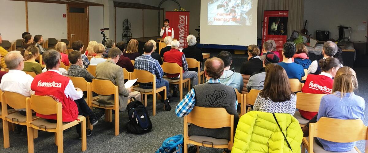 Auch am Teamtag gab es zunächst Einblicke in die Projekteinsätze des vergangenen Jahres. Die humedica-Mitarbeiter Sandra von der Wippel und Johannes Peter berichteten aus ">Ostafrika, ">Mexiko, ">Sri Lanka und dem ">Iran.