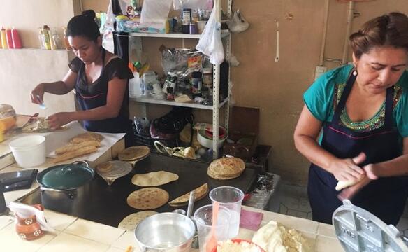 Während unser Hauptkoordinator Heinz Geld tauscht, gehe ich also auf kurze Shoppingtour auf dem lokalen Markt. Ich könnte an solchen Plätzen ganze Tage verbringen. Immer ist etwas los, es duftet nach leckerem Essen und man kommt schnell mit den Leuten ins Gespräch. Heute kaufe ich mal etwas Neues: Gefüllte Maistaschen mit Tunfisch, Hähnchen und Champignons.