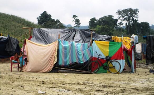 Da viele Familien in Jama ihr Haus durch das Beben verloren haben, errichten sich immer mehr Menschen Schritt für Schritt eine notdürftige Unterkunft in einer Zeltstadt am Rand der Stadt. Dort leben sie nun. Als sei dies alles nicht genug, hat es in der vergangenen Nacht stark geregnet und der gesamte Ort gleicht nun einem Meer aus Schlamm. Alles ist dreckig, alles ist nass.