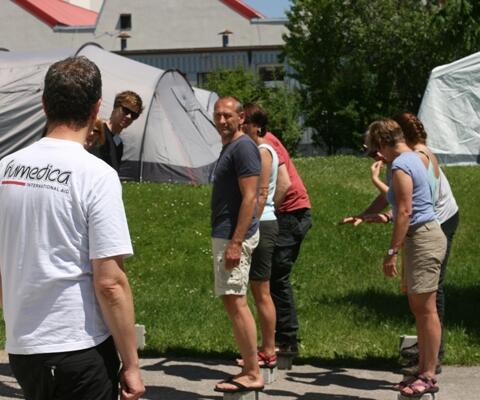 Rund 30 Besucher aus Teilen der Bundesrepublik und sogar aus der Schweiz verbrachten die vergangene Woche in Kaufbeuren. Grund ihres Aufenthaltes unter einfachsten Bedingungen in Zelten war das offizielle ">humedica-Einsatztraining, das die potenziellen Einsatzkräfte theoretisch und praktisch auf den Ernstfall vorbereitet, Krisensituationen inklusive.