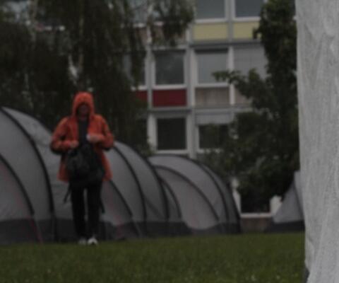 Lautes Schreien ist zu hören, vermeintlich verwundete und auf Hilfe angewiesene Menschen warten nach einer Katastrophe traumatisiert auf Unterstützung. Als ein Einsatzteam mit roten Westen eintrifft, möchte jeder der Betroffenen unmittelbar Hilfe bekommen, es bricht Chaos aus. Verstärkt wird dieses, als von offizieller Stelle ein Anruf mit der Anweisung erfolgt, dass das Team aus Sicherheitsgründen umgehend die betroffene Ortschaft verlassen müsse.