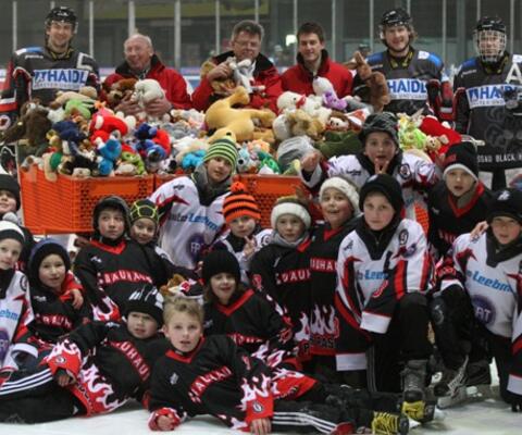 Ein auf dem Kopfkissen liegender Teddybär oder eine unter die Bettdecke gekuschelte Plüschkatze: das sind Szenarien, in die Kuscheltiere auf den ersten Blick passen. Die Passau Black Hawks haben nun aber auch gezeigt, dass plüschige Hunde, Bären und Zebras auch auf dem Eis eine gute Figur machen.