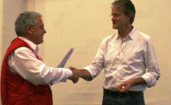2.500 Euro für die unterschiedlichen Hilfsmaßnahmen hatten Thomas und Tobias Stricker im Gepäck. Einen entsprechenden Scheck nahm humedica-Geschäftsführer Wolfgang Groß sehr dankbar entgegen: