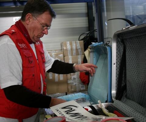 Am vergangenen Wochenende hatte humedica-Einsatzkraft und -Mitarbeiter Klaus Ruhrmann, zusammen mit einem Kollegen von der Organisation Aktion Hoffnung und sieben ehrenamtlichen Helfern daran gearbeitet, die vielen kuscheligen Decken weniger voluminös zu verpacken und sicher zu verladen.