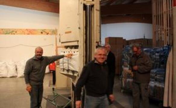Zwei volle Tage wurde geschleppt, gepresst, verpackt und verladen und nun endlich ist es soweit: in wenigen Tagen werden die wichtigen Wärmespender ins umkämpfte, momentan auch sehr winterliche Syrien reisen.