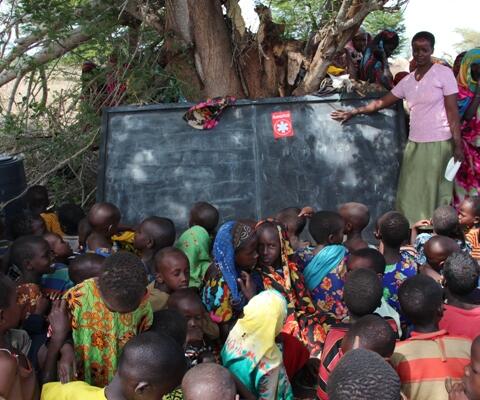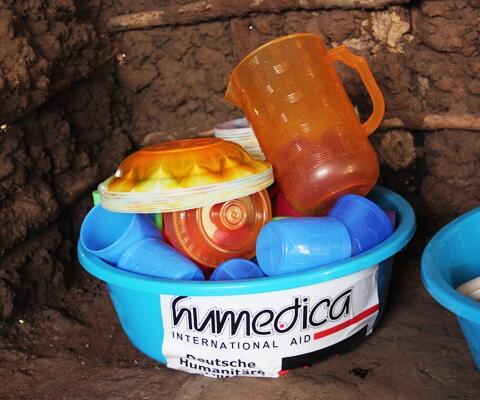 An den Bildungsaspekt, die geistige Nahrung, hat humedica ebenfalls gedacht. Für alle Schulen wurden Unterrichtsmaterialien besorgt: Lernplakate, eine Tafel, Kreide, Hefte, Bleistifte, Lineale und was sonst noch so in ein Klassenzimmer gehört - auch wenn der Unterricht an manchen Orten noch unter einem Baum stattfindet.
