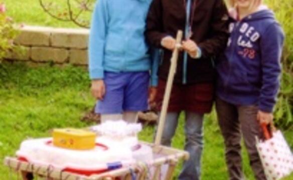 Anschließend machten sie sich mit einem Bollerwagen auf den Weg und zogen durch Salenwang. Die drei aufgeweckten Mädchen gingen von Tür zu Tür und baten den Bewohnern ihre selbst hergestellten Waren zum Verkauf an.