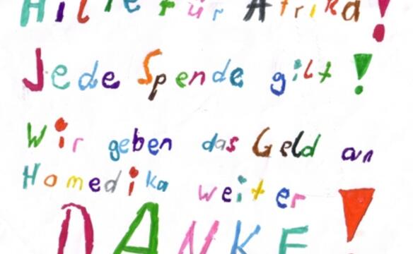 Den gesamten Erlös wollten sie an humedica übergeben und auf diese Weise Not leidenden Menschen in Afrika zukommen lassen. Um den guten Zweck ihres Vorhabens für alle Spender deutlich sichtbar zu machen, hatten sie einen selbst gemalten Zettel an ihrem Bollerwagen befestigt.
