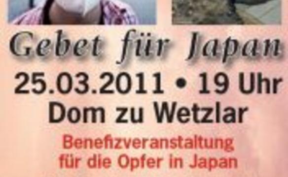Unter der Schirmherrschaft von Wolfgang Dette, dem Oberbürgermeister der Stadt Wetzlar, möchten die Veranstalter an diesem Abend Menschen aus Deutschland zusammenbringen, um vereint für die Opfer der Naturkatastrophe in Japan zu beten. Die Benefizveranstaltung findet am Freitag, den 25. März 2011 im Dom zu Wetzlar statt. Beginn ist um 19.00 Uhr.