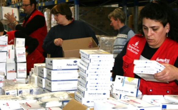 Am gestrigen Donnerstag erreichten die ersten Sachspenden das humedica-Lager in Kaufbeuren. Paletten an Pflege- und Verbandsmaterialien wurden für den Versand nach Haiti gespendet, die nun unter größtem Zeitdruck im Lager sortiert und versandfertig gemacht werden.