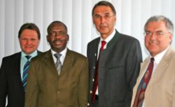 Am vergangenen Dienstag traf der Botschafter Isidore Bio bei einem Treffen in der humedica-Zentrale in Kaufbeuren Landrat Johann Fleschhut und Oberbürgermeister Stefan Bosse. Erfreut über den internationalen Besuch hießen sie den Botschafter willkommen.