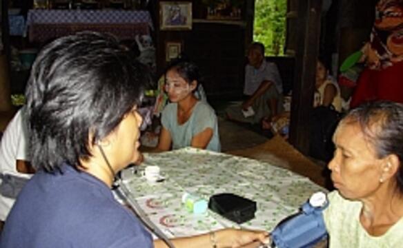 Schnell werden die Warteschlangen nach Dringlichkeit der Beschwerden sortiert und die Hilfe vorbereitet. Am Ende eines langen Tages konnten schließlich 247 Menschen behandelt und mit Medikamenten ausgestattet werden. Wir verteilten 40 Säcke Reis, Betttücher und Mosikitonetze an die 880 Familien des Dorfes. Um 17 Uhr verlassen wir unter heftigem Abschiedswinken das Dorf und gegen 1 Uhr in der Nacht ist die gesamte Mannschaft sehr müde, aber doch sehr zufrieden mit dem Ergebnis der Arbeit, wieder in Rangun.