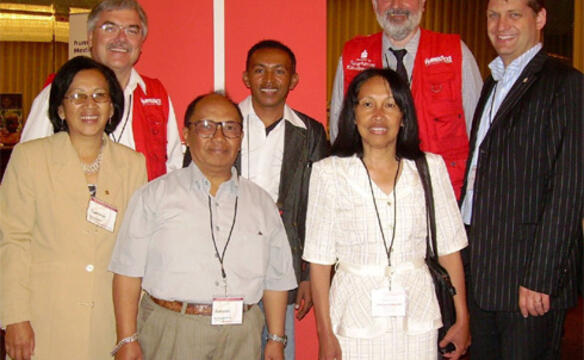 Einer der ersten Einsätze führte das humedica-Ärzteteam im Juli 2000 in die Republik Madagaskar, einen Inselstaat an der Südspitze Afrikas. Die amtierende Justizministerin des Landes, Madame Lala Henriette Ratsiharovala, die ebenfalls an der Prison Fellowship Konferenz teilnahm, besuchte am 6. Juli in Begleitung der Direktorin von Prison Fellowship Madagaskar, Noelisoa Raharimalala, den Stand von humedica, um sich persönlich für das Engagement der humedica-Ärzte zu bedanken: