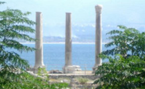 Das Meer und die Landschaft sind schön. Im Vorbeifahren sehen wir viele römische Trümmer, Säulen, Amphitheater. Gelegenheit zur Besichtigung haben wir nicht. Doch heute Abend sind wir - immerhin - mit dem Schuldirektor schwimmen gegangen. Mondbeglänztes Meer, die glitzernden Lichter der Hafenstadt Tyros, das Meer angenehm warm. Für eine Stunde Urlaub.