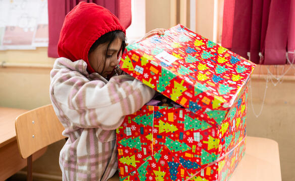 Wie dieses Mädchen in Rumänien freuen sich Tausende Kinder über liebevoll gepackte Geschenke mit Herz.