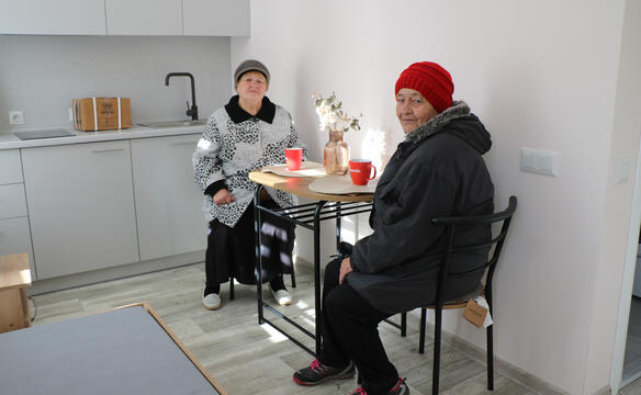 Natalya (links) ist eine von rund 6,5 Millionen Menschen, die innerhalb der Ukraine fliehen mussten. Sie wohnt nun in einer Wohnung, die von humedica instandgesetzt wurde.