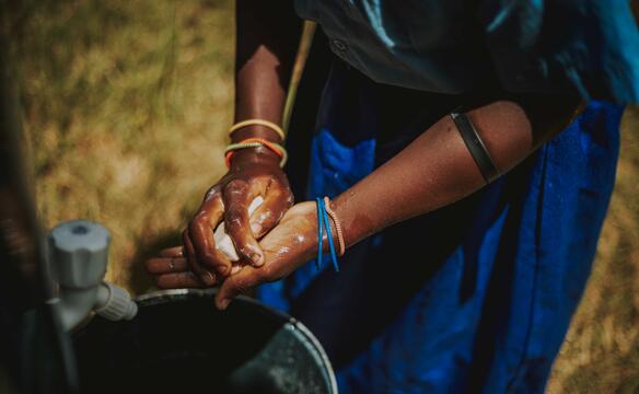 humedica richtet beispielsweise an Schulen Handwaschstationen ein. Schülerinnen und Schüler lernen hier spielerisch, wie wichtig richtige Hygiene ist.