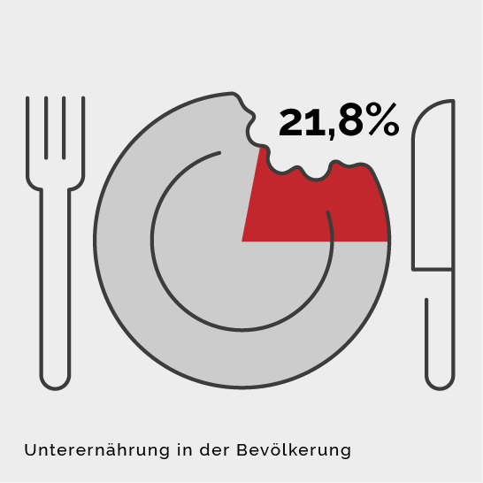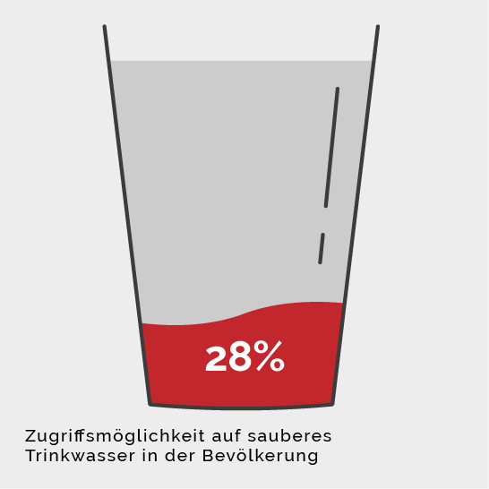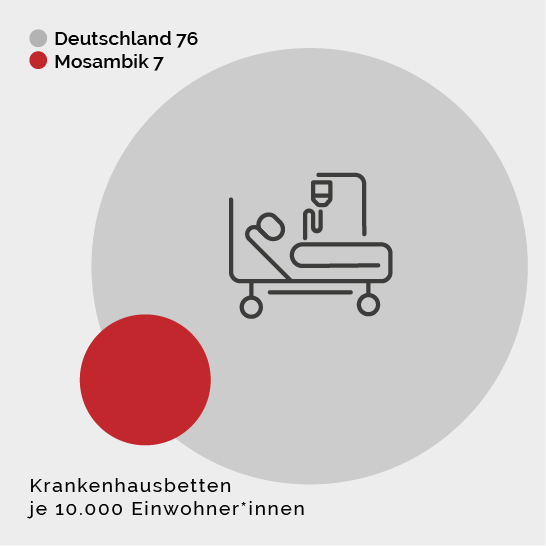 Die medizinische Infrastruktur ist besonders im ländlichen Raum schwach. Auf 10.000 Menschen kommt nur ein Arzt (zum Vergleich: in Deutschland sind es 44 Ärzte auf 10.000 Einwohner). Viele können sich ohnehin weder Arztbesuche noch Medikamente leisten.