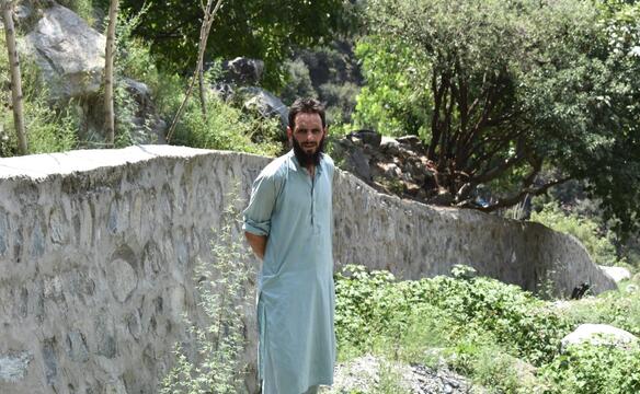 Hamza vor der Mauer, die sein Dorf schützt